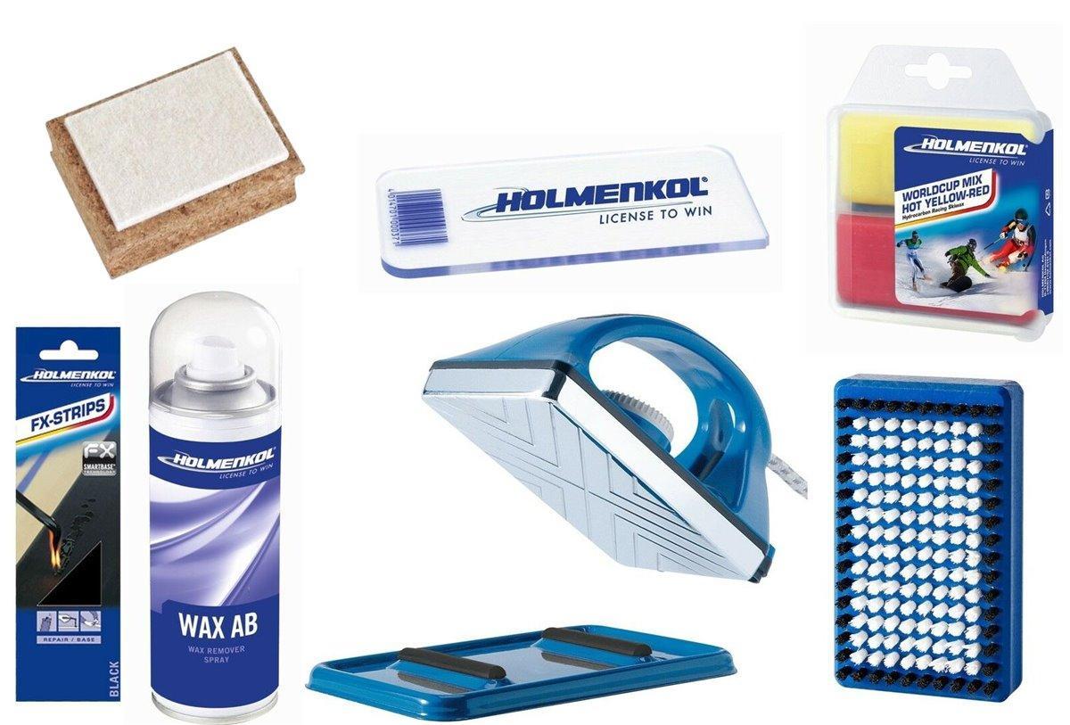 Ein 7-teiliges Skiwachs Starter Set von HOLMENKOL, inclusive Wachsbügeleisen.