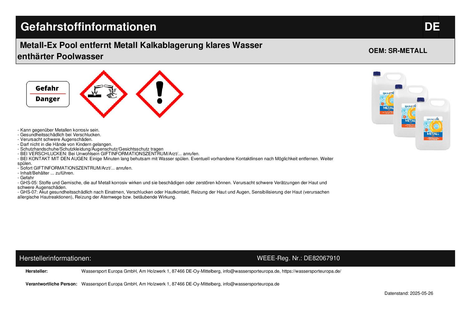 H290 Kann gegenüber Metallen korrosiv sein.