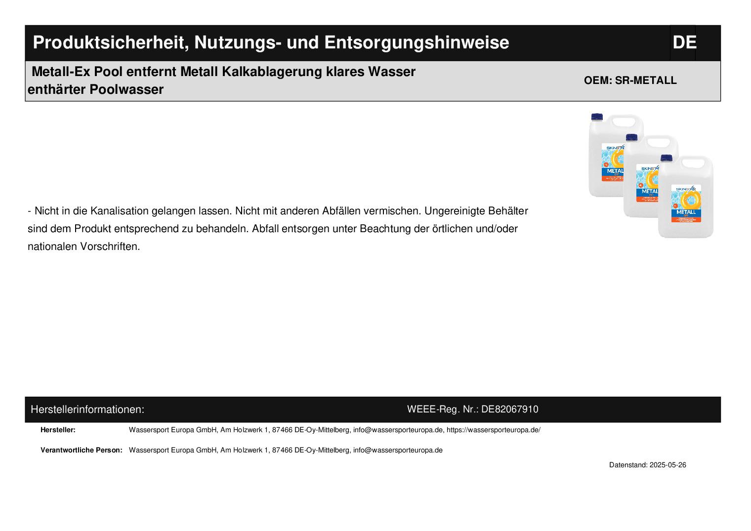 SkinStar Metall Off - entfernt anorganische Ablagerungen, einschließlich: Eisen-, Kupfer- und Kalziumverbindungen & enthärtet das Wasser